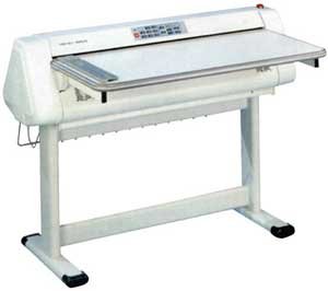 ELCTRICAL MAP FOLDING MACHINE 920S. Can perform cross folding. Max. folding width : 950mm. Speed : 10M/min (A0 in 10 sec). Paper thicknes : from 80 up to 110gr. Suitable for normal, thermal, and plotter paper.